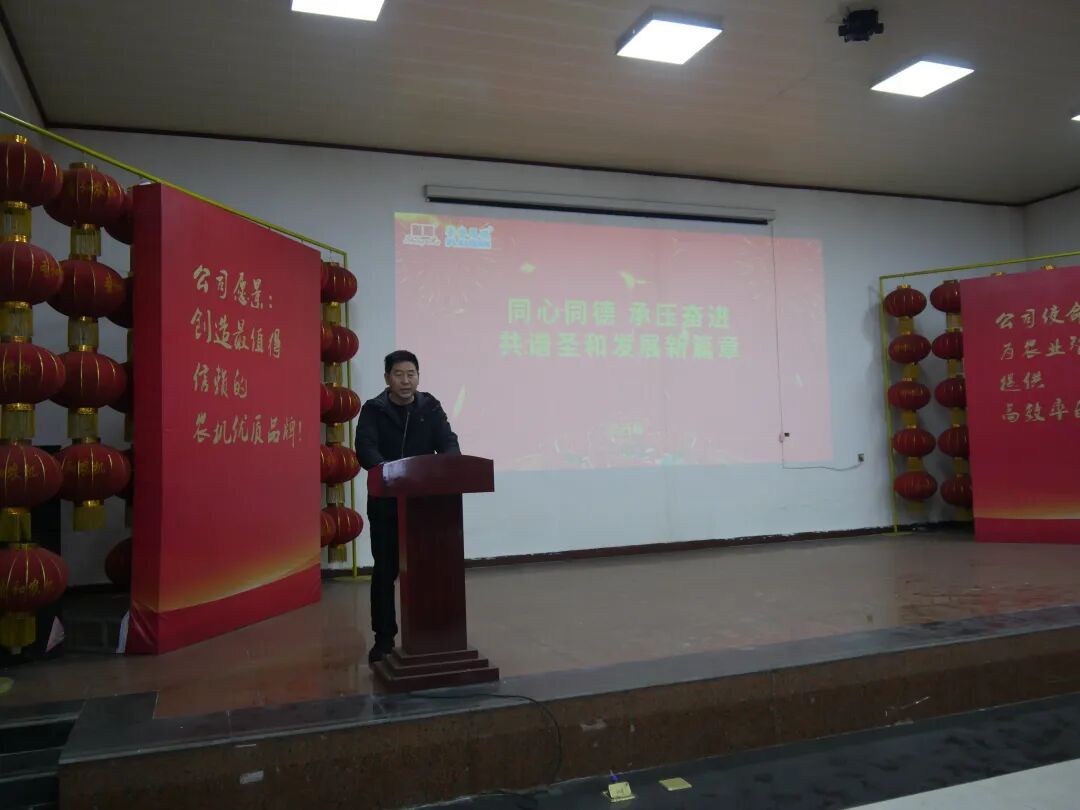 公司總經理師西峰發表了題為《同心同德承壓奮進共譜圣和發展新篇章》的主旨講話。師總首先代表公司向全體員工的辛勤付出和員工家屬的默默支持致以誠摯感謝和新年祝福,隨后全面回顧了公司發展的關鍵歷程與輝煌成就。